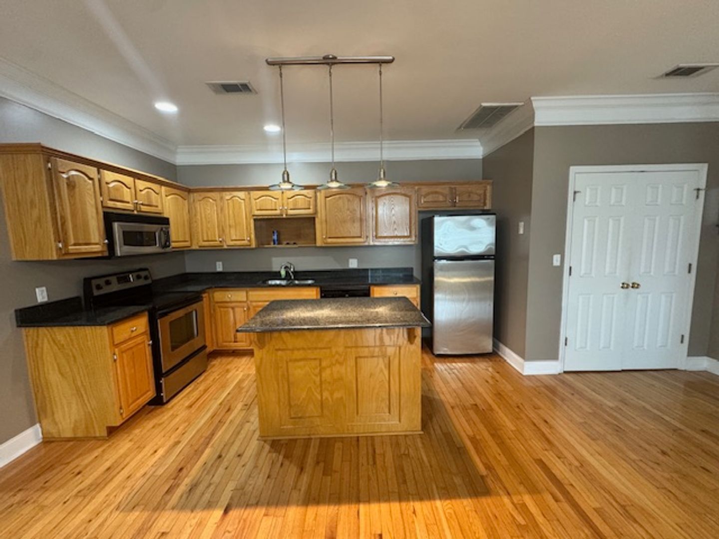 Updated studio apartment above law office and convenient to all of downtown LaGrange. Large open space that includes kitchen and living/sleeping space. Laundry room, closet, and bathroom have separate spaces. Washer & Dryer included.